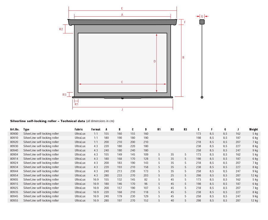 Tipo de Tela: Branca Ultra Lux com Ganho de 1.2 com moldura de topo 40cm