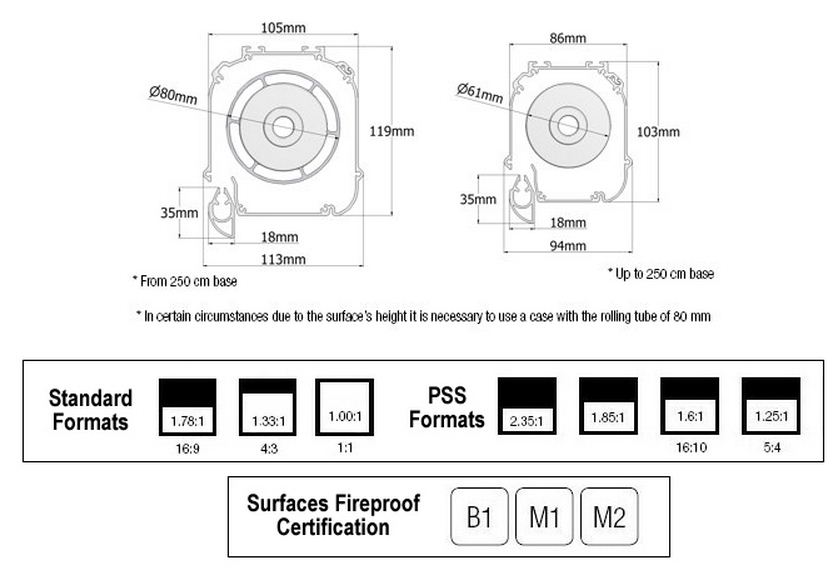 Telas de Projeção 250cm 4:3 Tensionada Prof. Classic Reference Grey Eléctrica Profissional Adeo